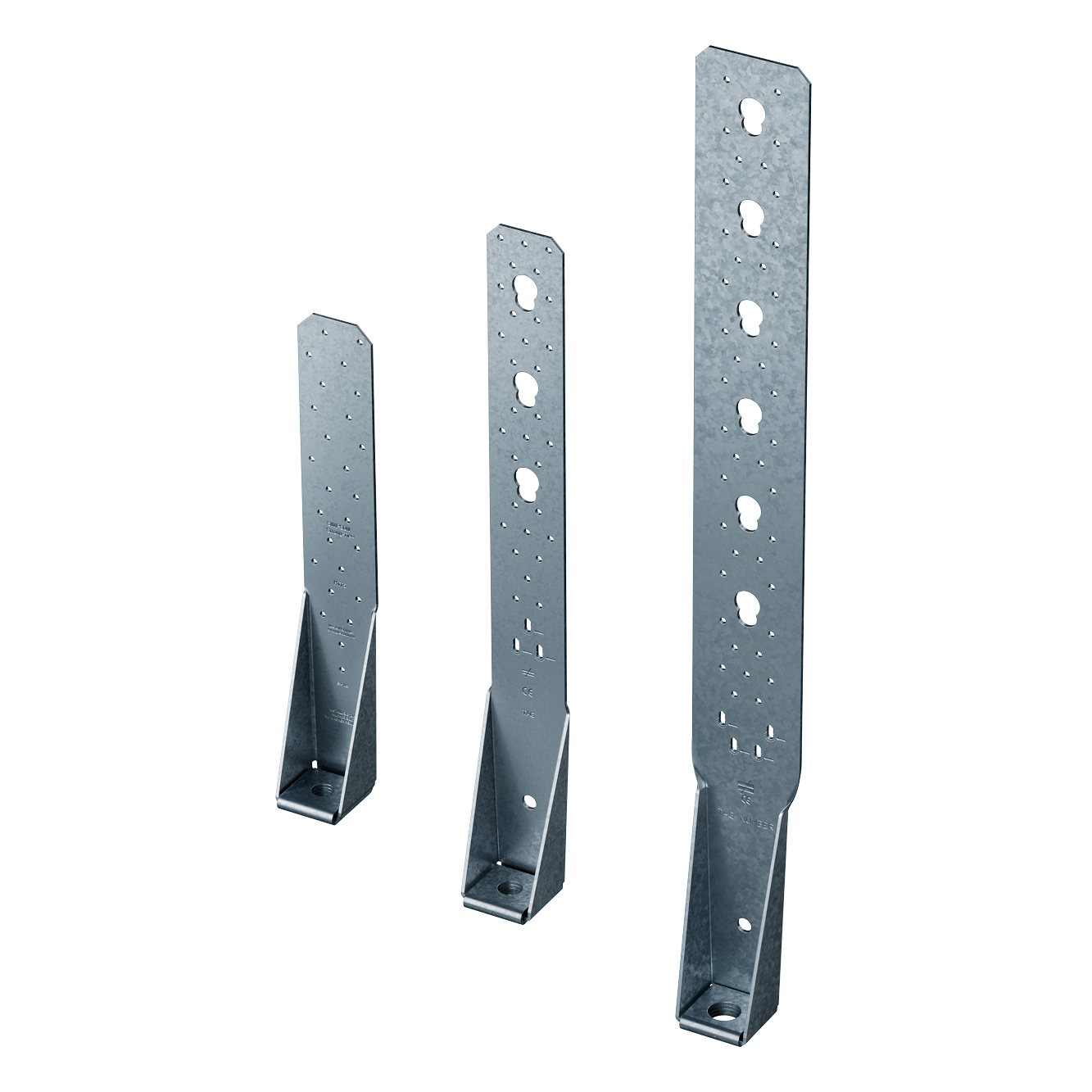 Estas ancoragens suportam esforços de tração em diferentes configurações: montagem de prumos, vigas ou pés de asnas pequenas.