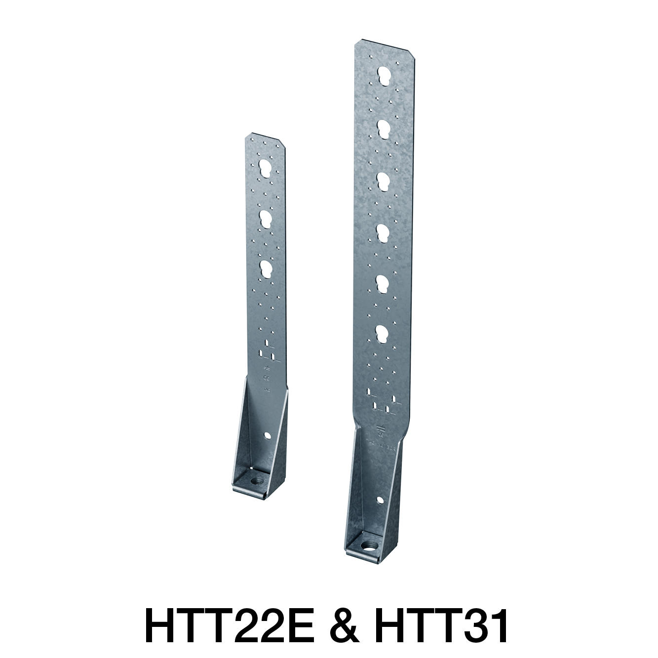Para HTT31, 4 CSA5.0x50 devem ser sempre instalados na extremidade inferior dos orifícios oblongos para atingir as capacidades indicadas na tabela. Para outros fixadores nestes furos, o cálculo deve ser calculado de acordo com a ETA.