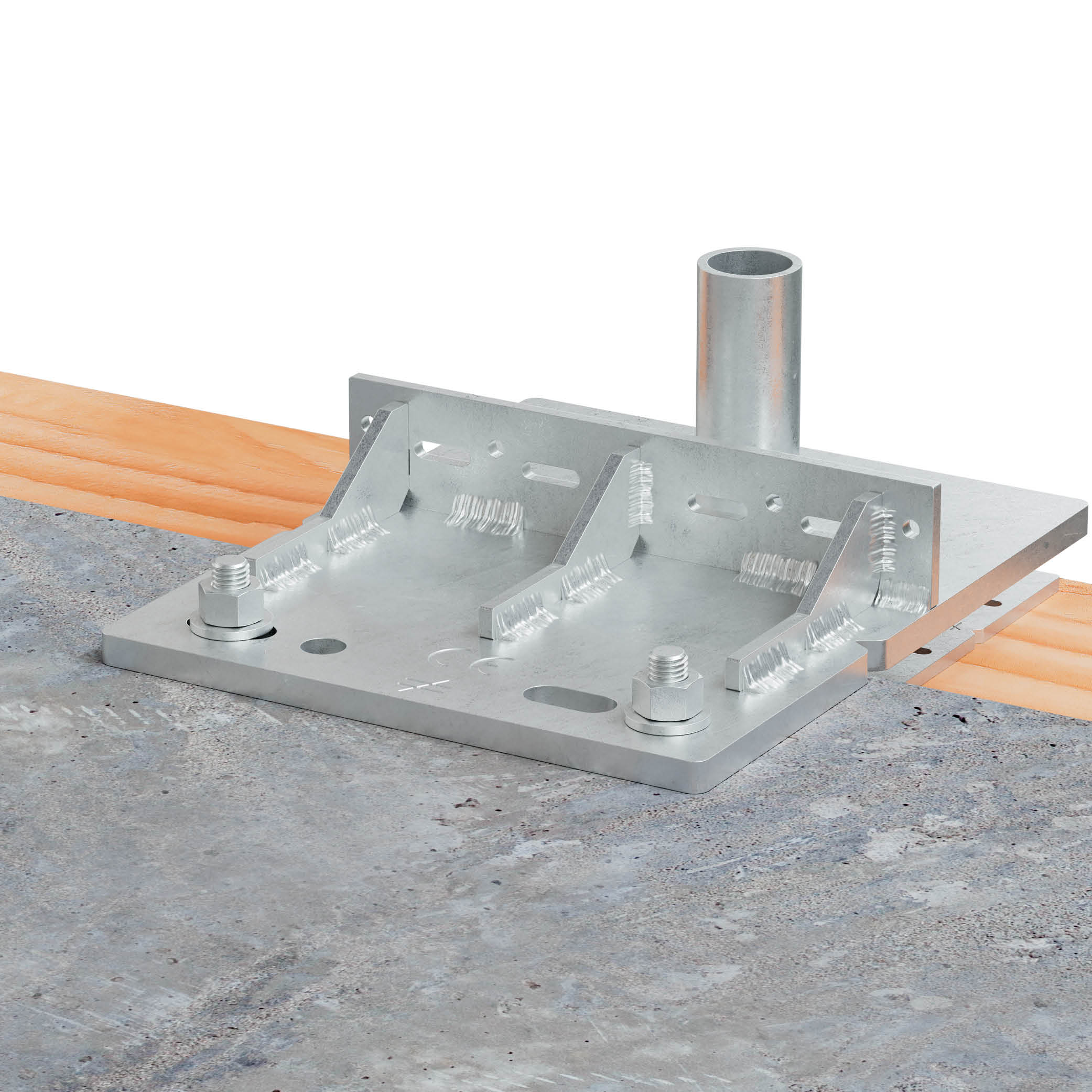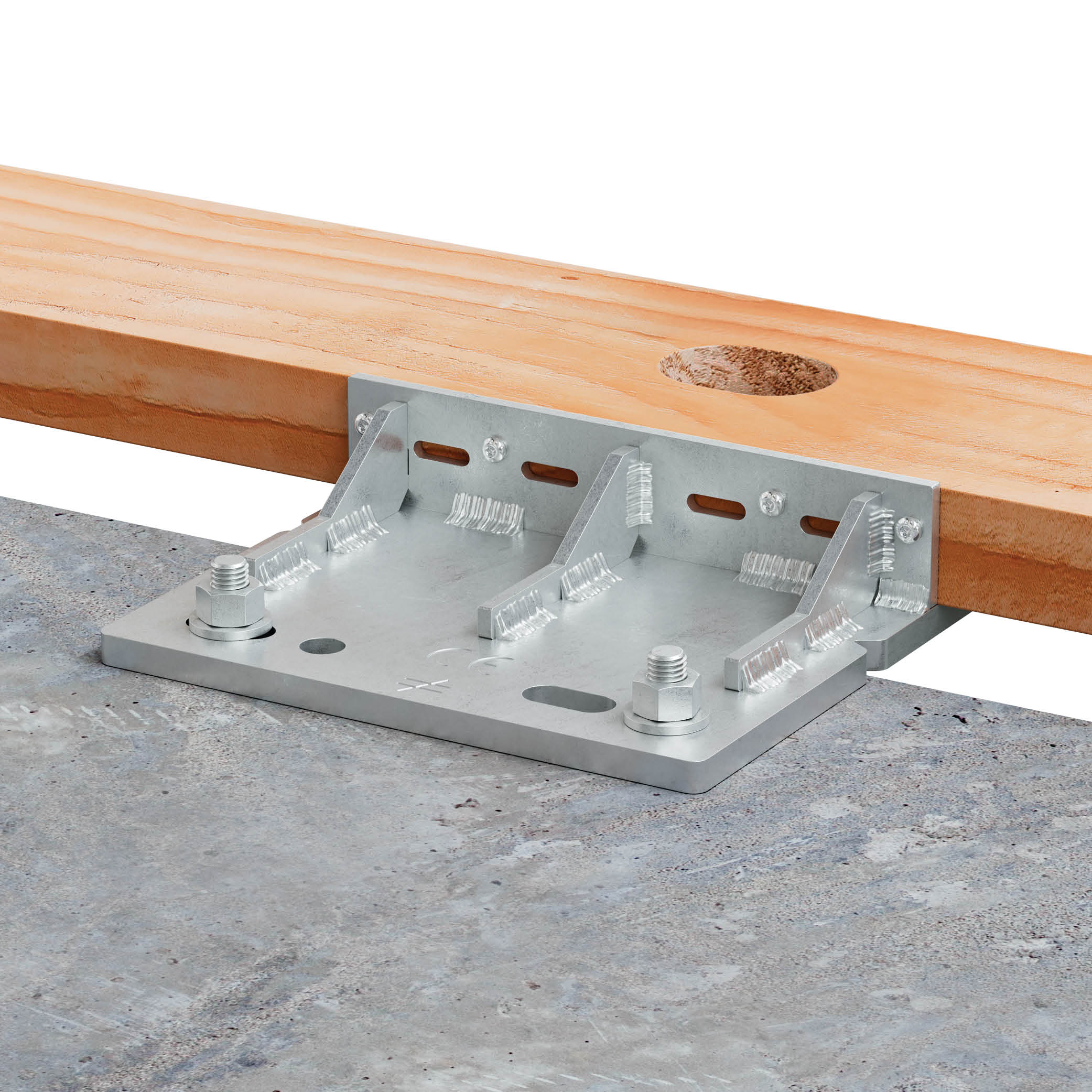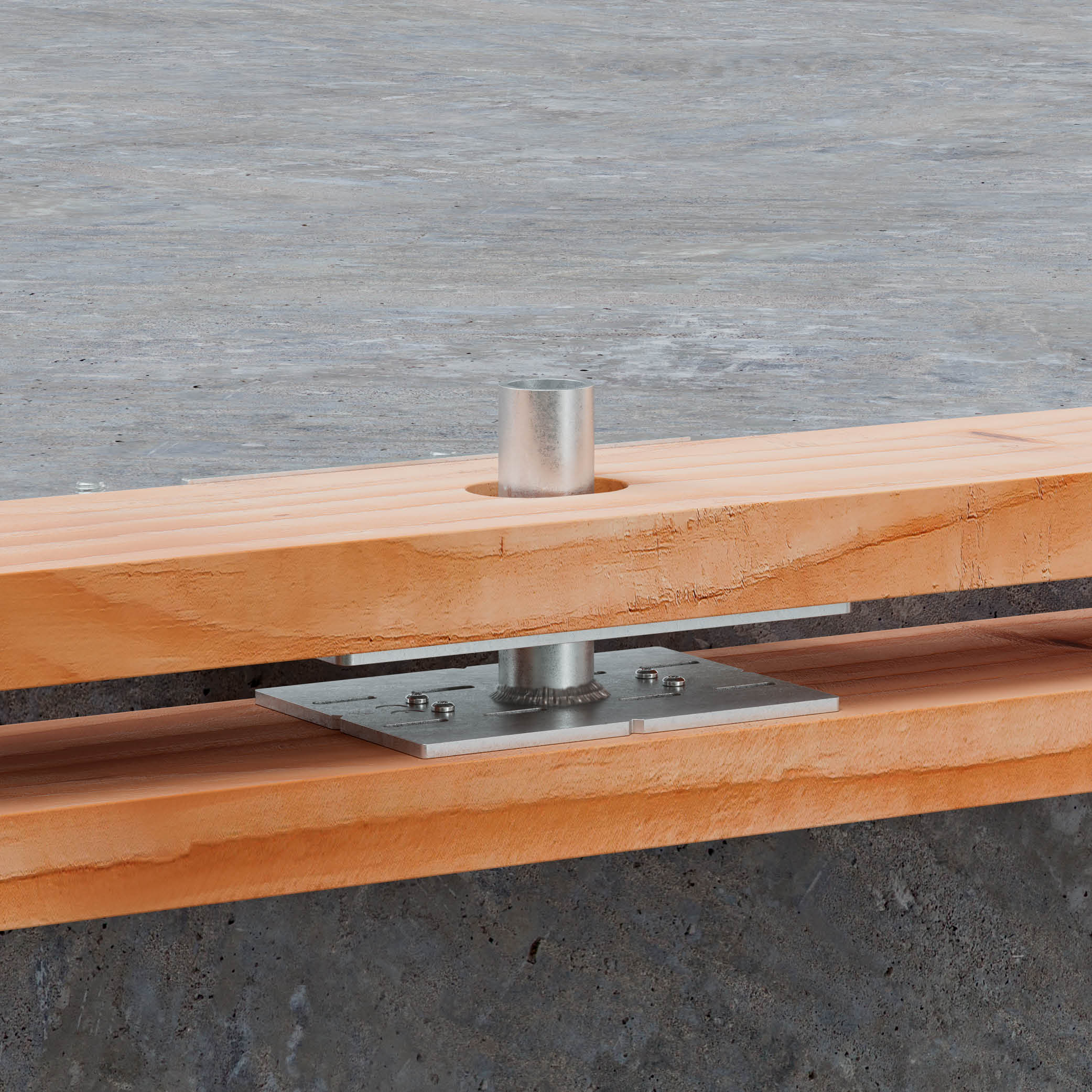 - No primeiro andar, coloque os BFOB na laje de betão ou na estrutura de aço, faça furos e instale parafusos de fixação para fixar a placa do BFOB (2 parafusos de fixação por placa).
