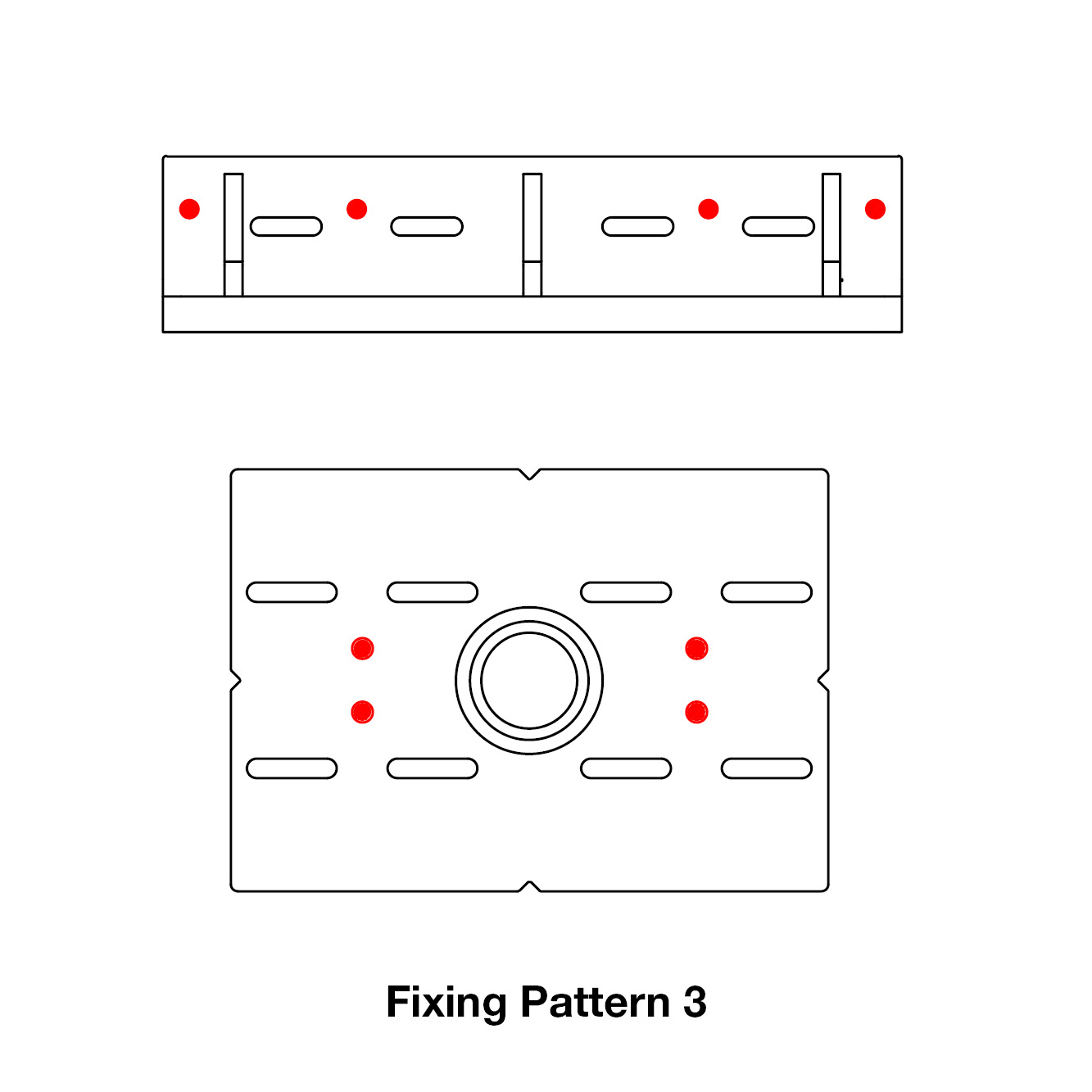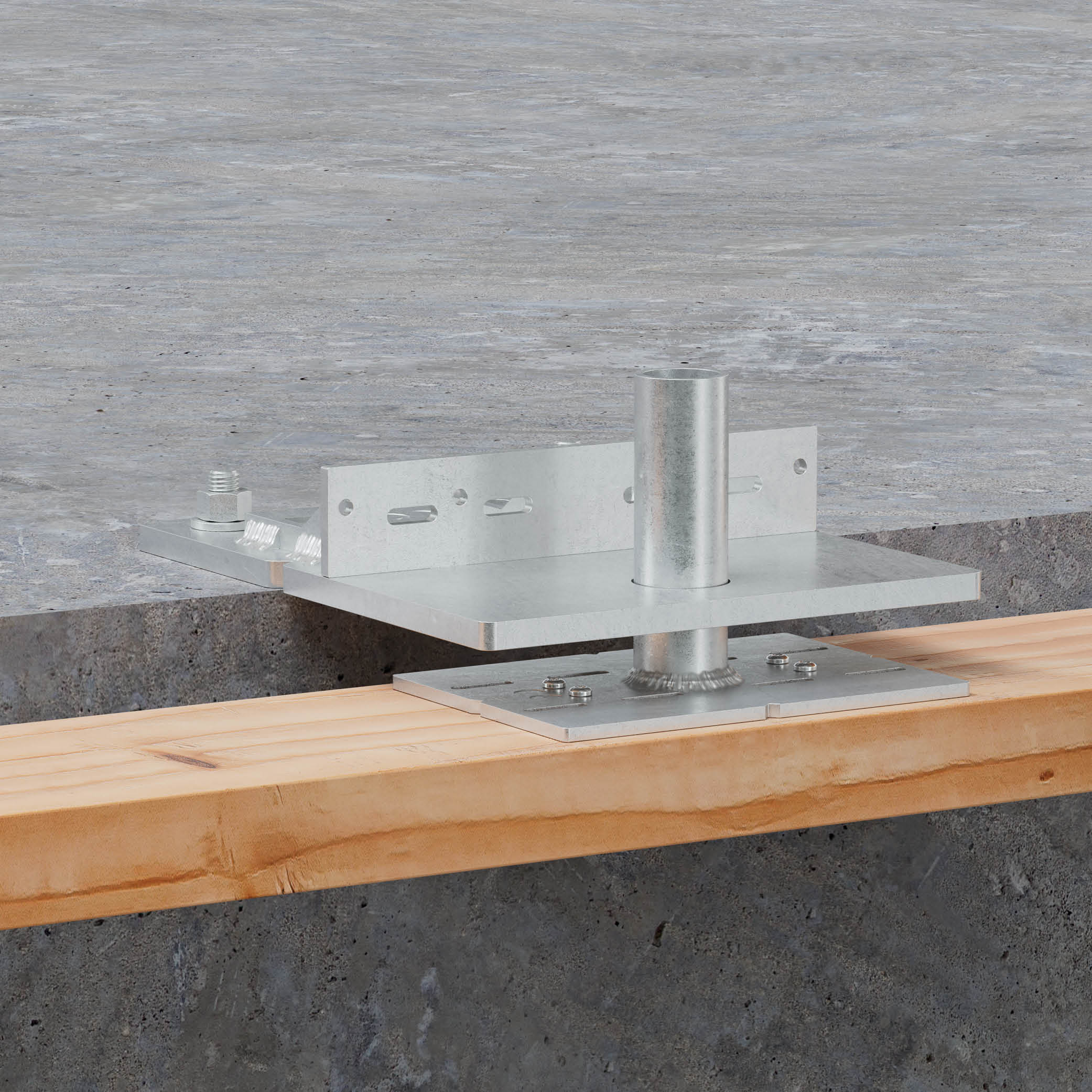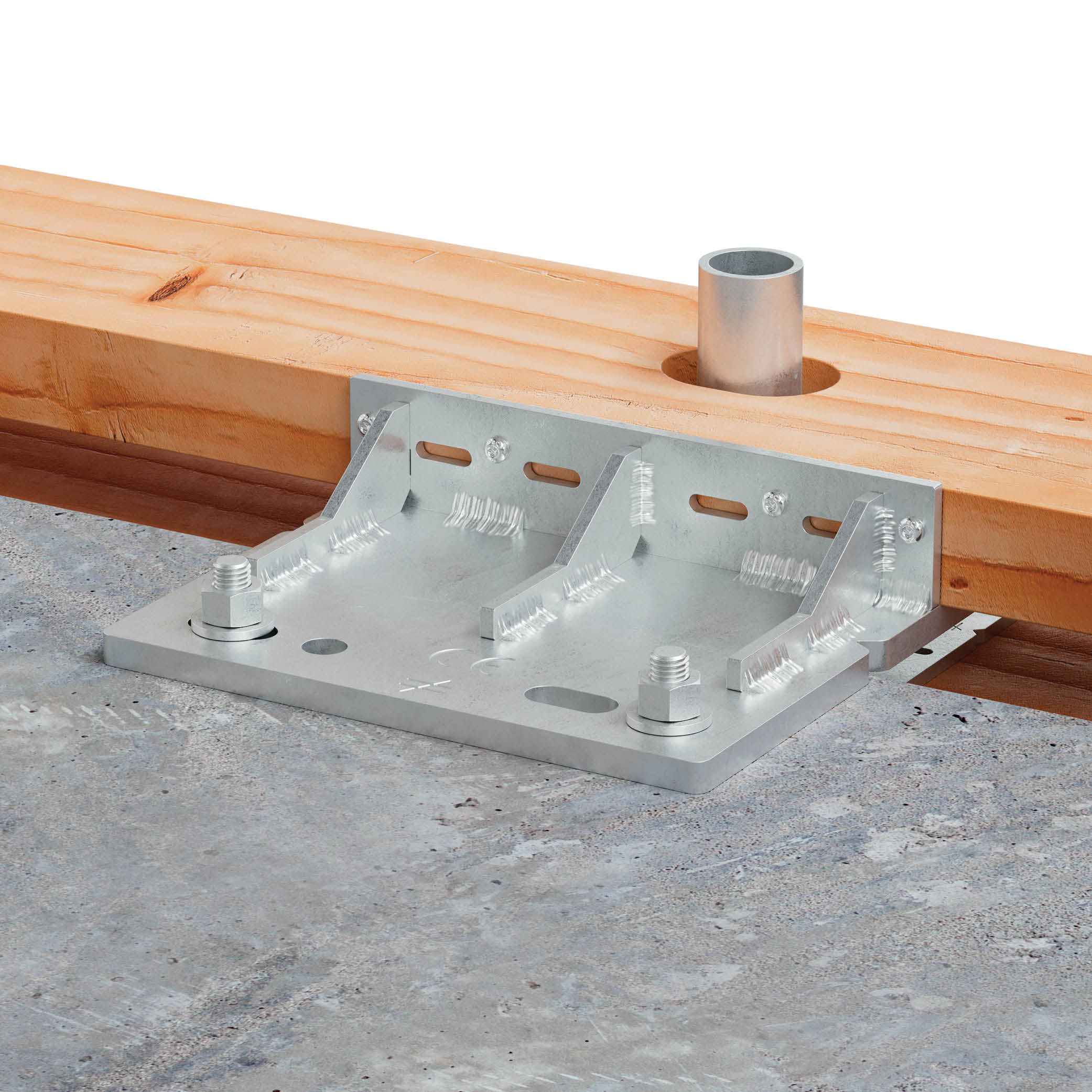 - No primeiro andar, coloque os BFOB na laje de betão ou na estrutura de aço, faça furos e instale parafusos de fixação para fixar a placa do BFOB (2 parafusos de fixação por placa).