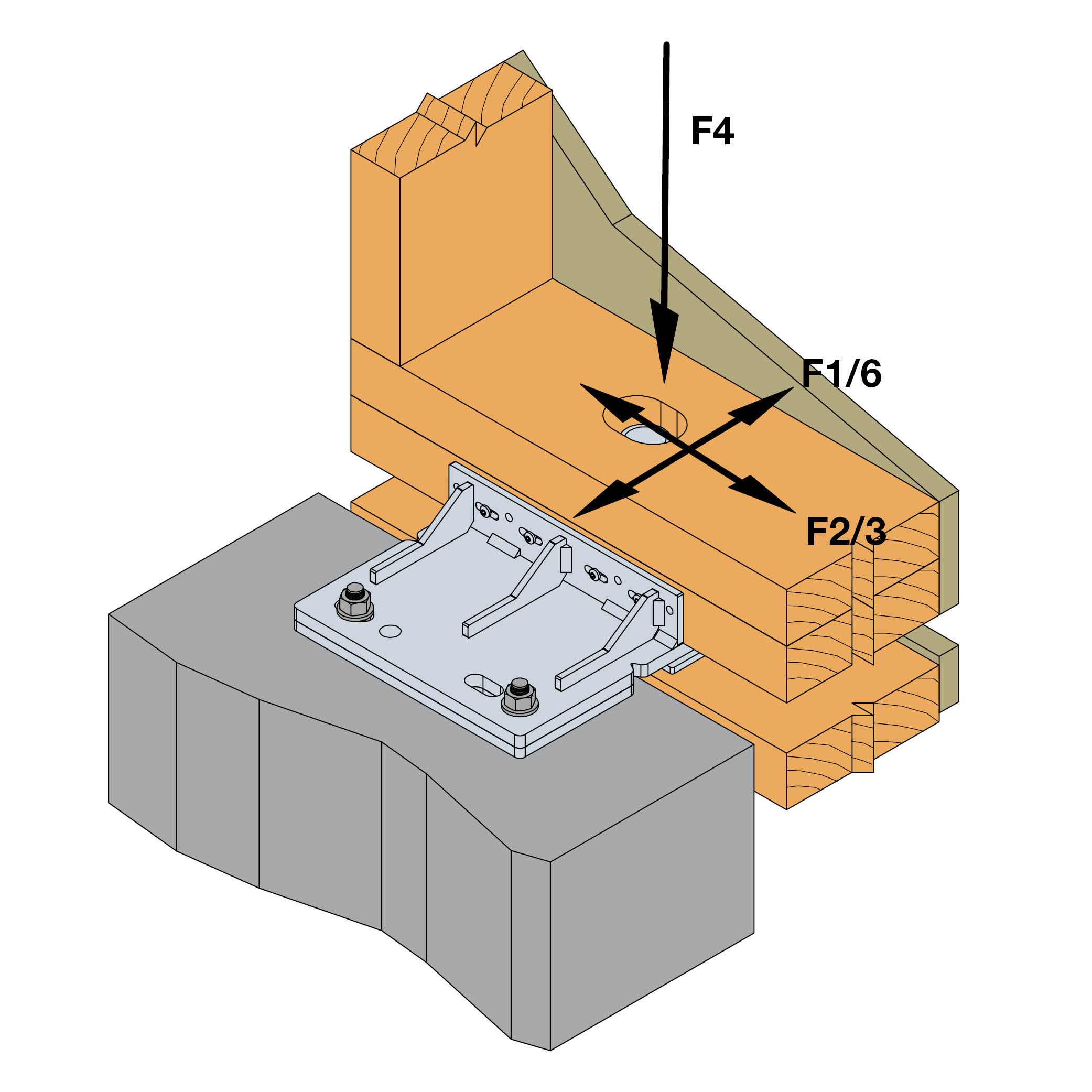 Quando se utiliza o BFOB em conjunto com o TFOB, pressupõe-se que as cargas horizontais (F1 e F2/3) são transferidas de forma igual através das travessas de madeira superior e inferior.