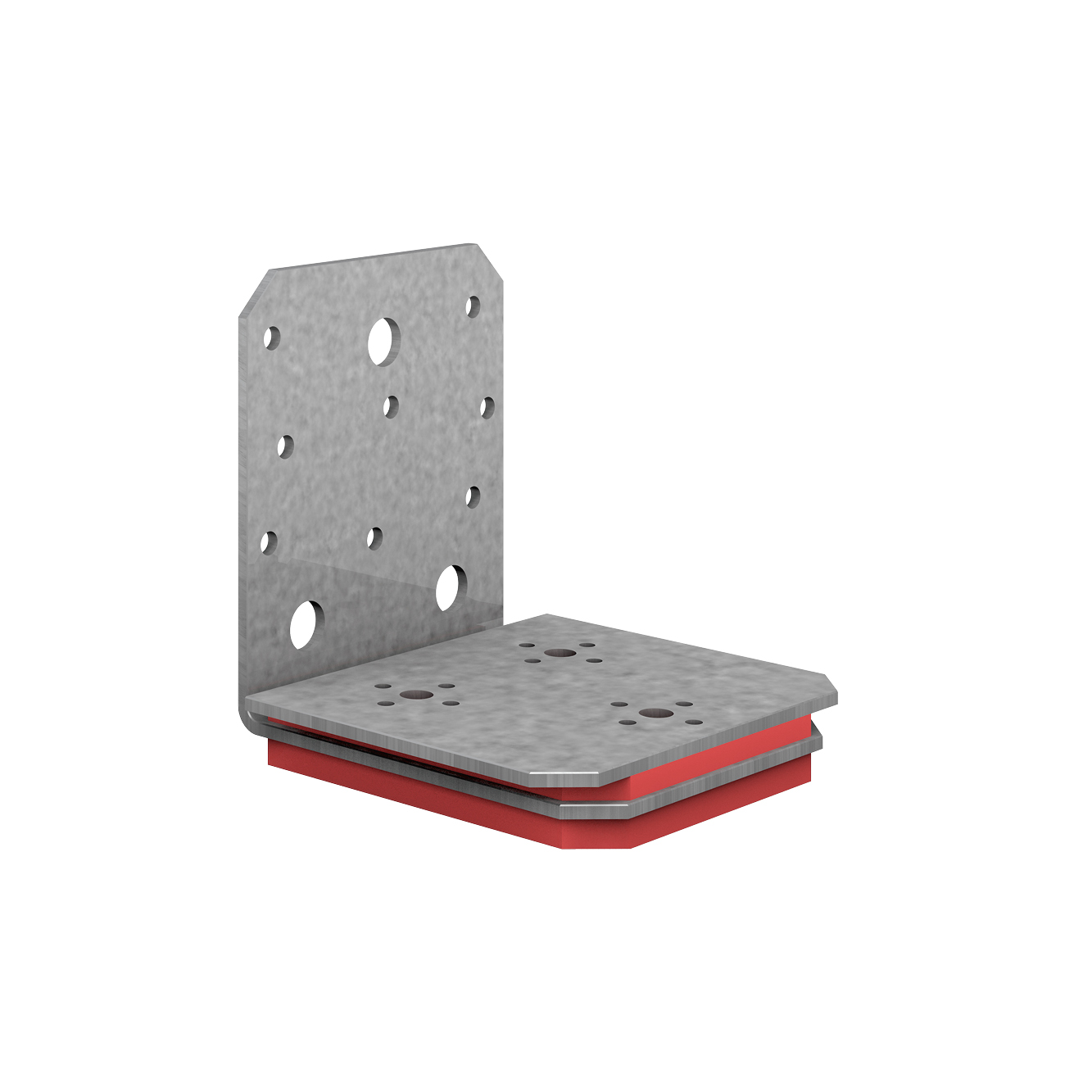 O ABAI é um esquadro inovador, porque associa um esquadro clássico a um material de isolamento acústico. Este permite a ligação entre os elementos da parede e da plataforma em painéis múltiplos (CLT).