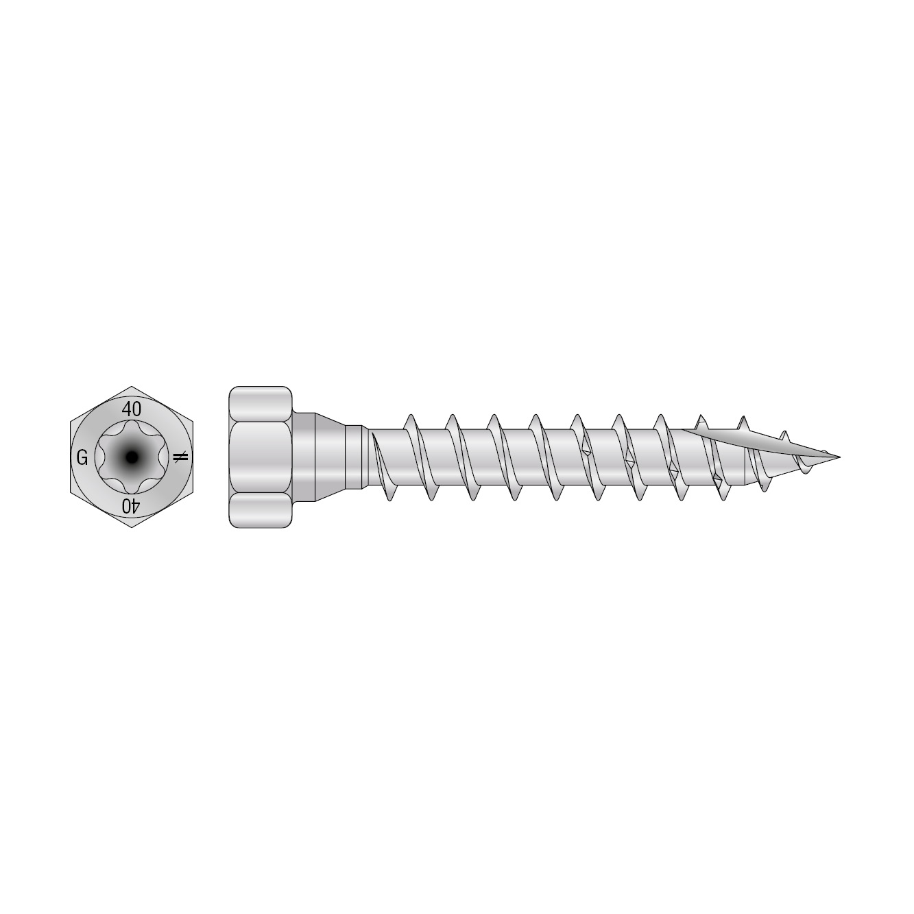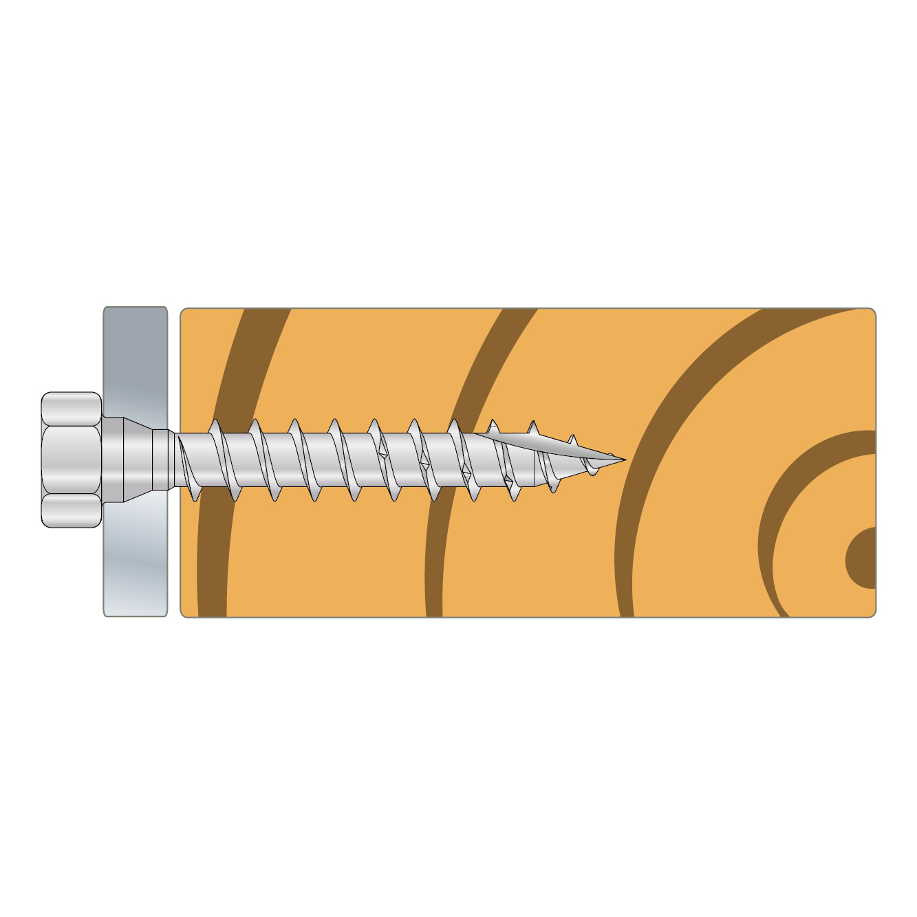 • Cabeça hexagonal: fixação perfeita da placa de aço na madeira graças à cabeça larga